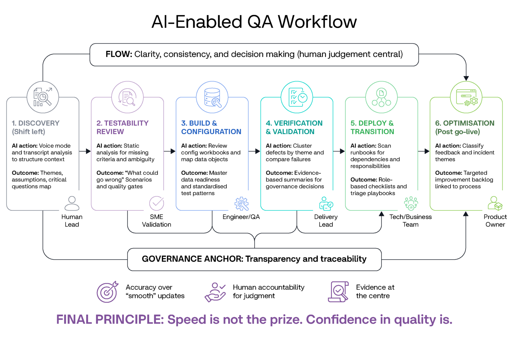 The teams that get the most value from AI in transformation QA may not be the ones with the cleverest prompts. They will be the ones who design repeatable workflows that keep humans accountable for judgement, keep evidence at the centre, and keep quality visible at every decision point. AI can make QA faster, but speed is not the main prize. Confidence in quality is.